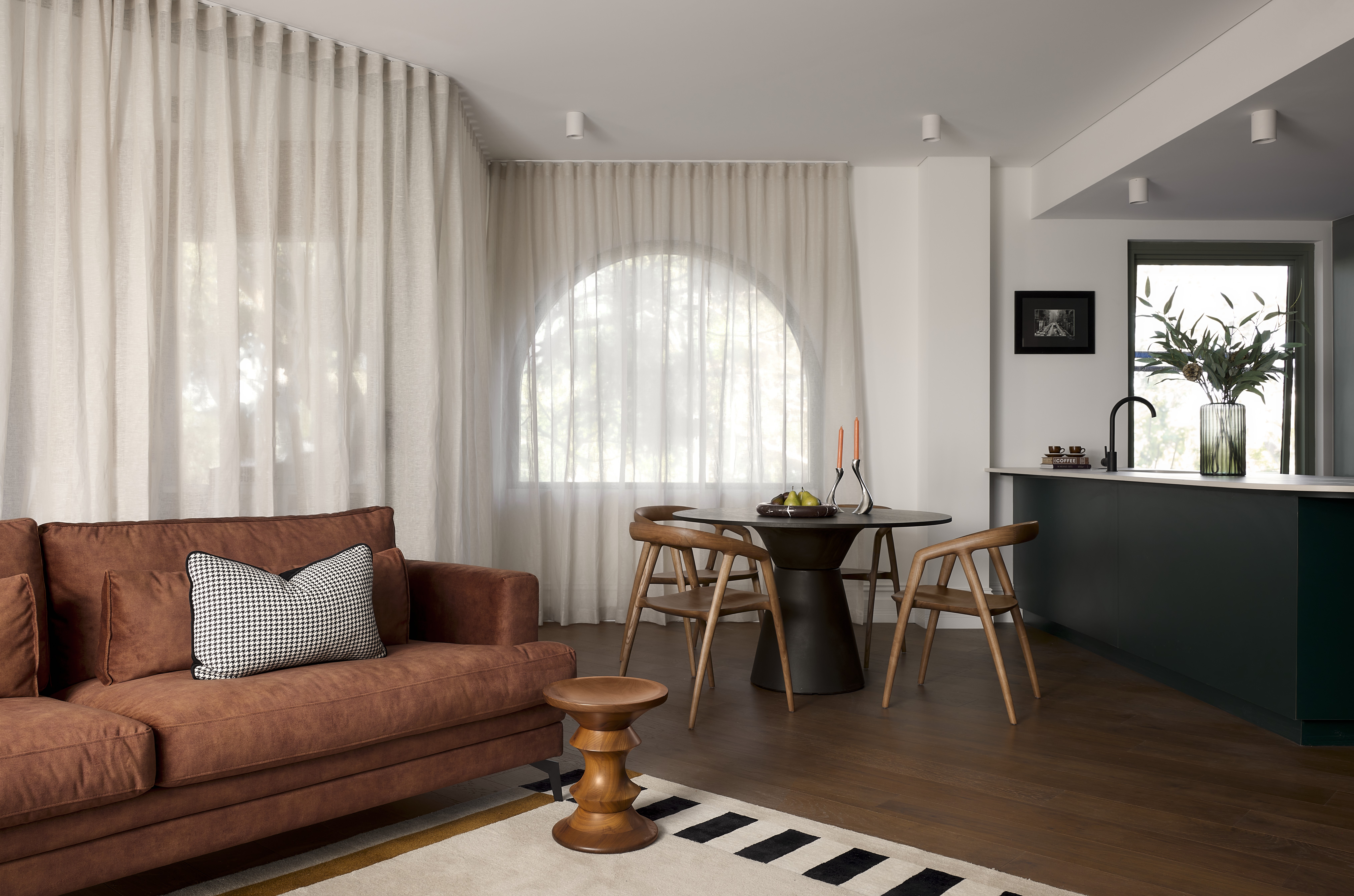 A harmonious balance of mixed metallic accents, colours and textures evoke a timeless warehouse feel. Bathrooms and ensuites encourage you to indulge in private moments of luxe rejuvenation, with impeccable custom joinery, brushed nickel tapware, terrazzo riverbed porcelain floors and designer lighting evoking a refined hotel feel.